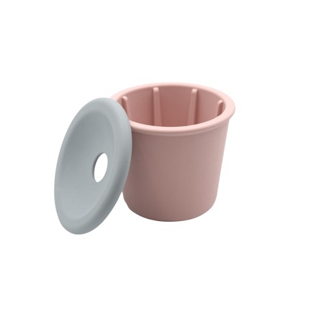 Z przykrywką z otworem – umożliwia wypadanie smaczków lub suchej karmy z kubka, co wydłuża zabawę i czas jedzenia